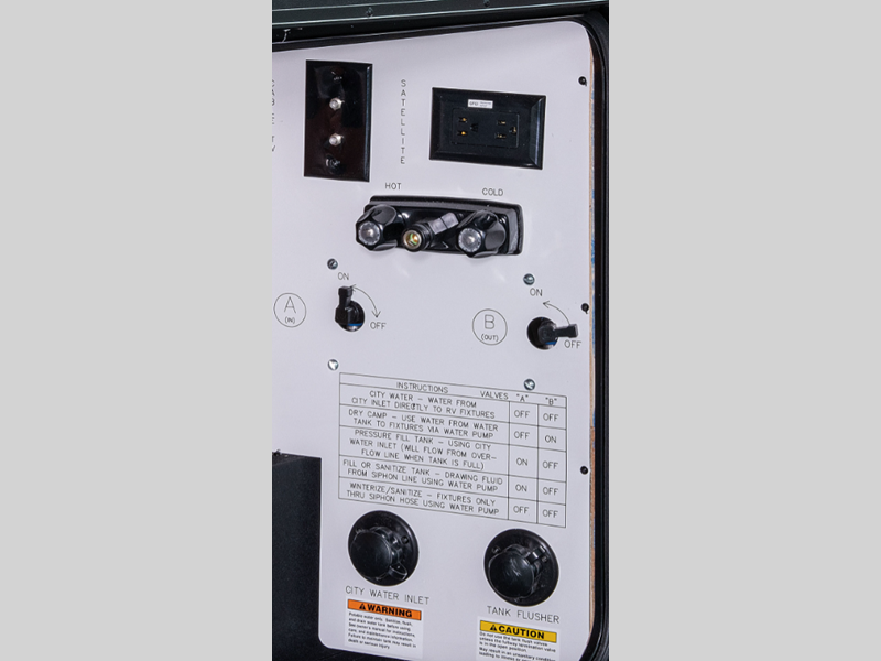 - Heated Water Convenience Center (incl. black tank flush, power fresh tank water fill, winterizing system, outside shower)
